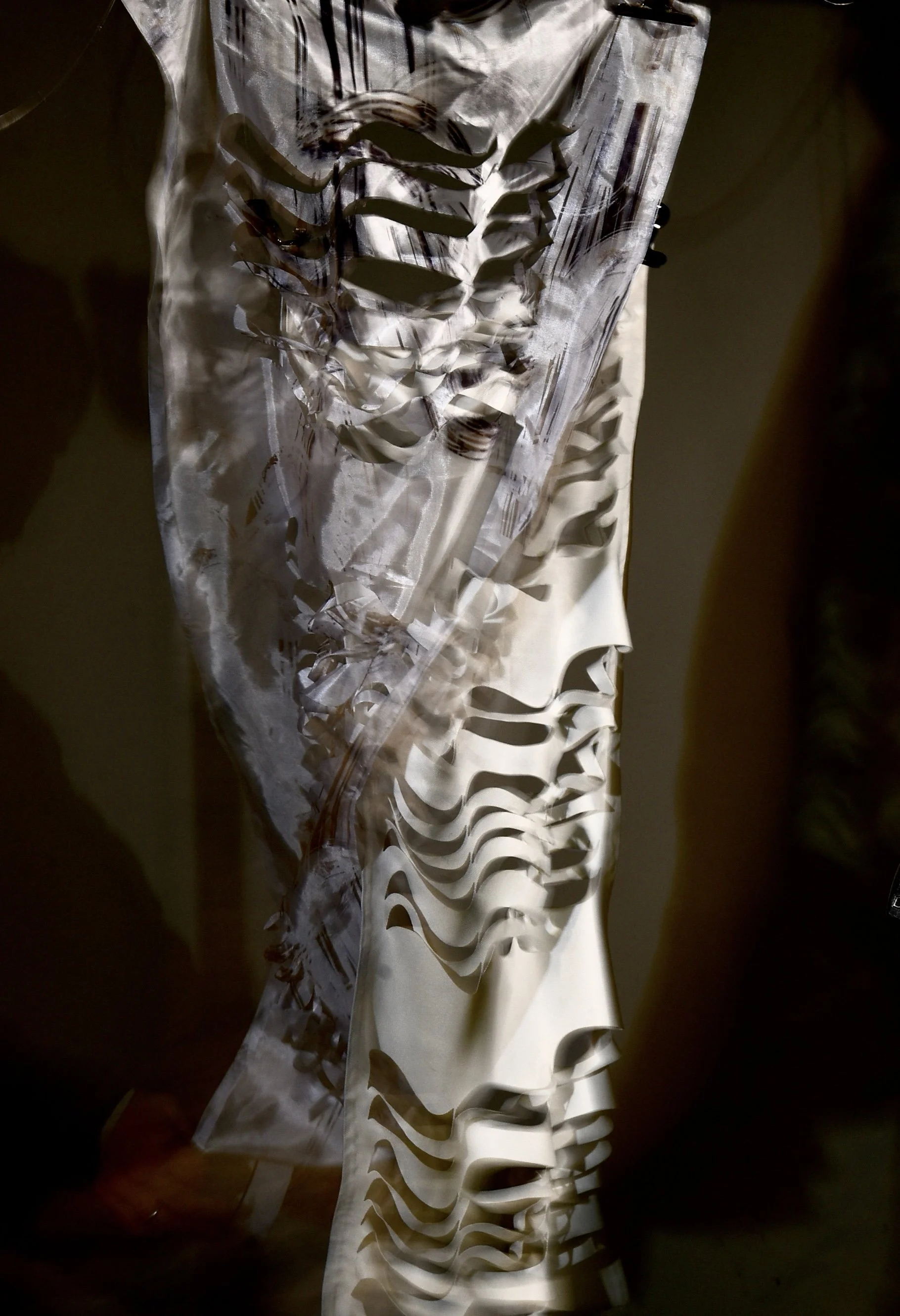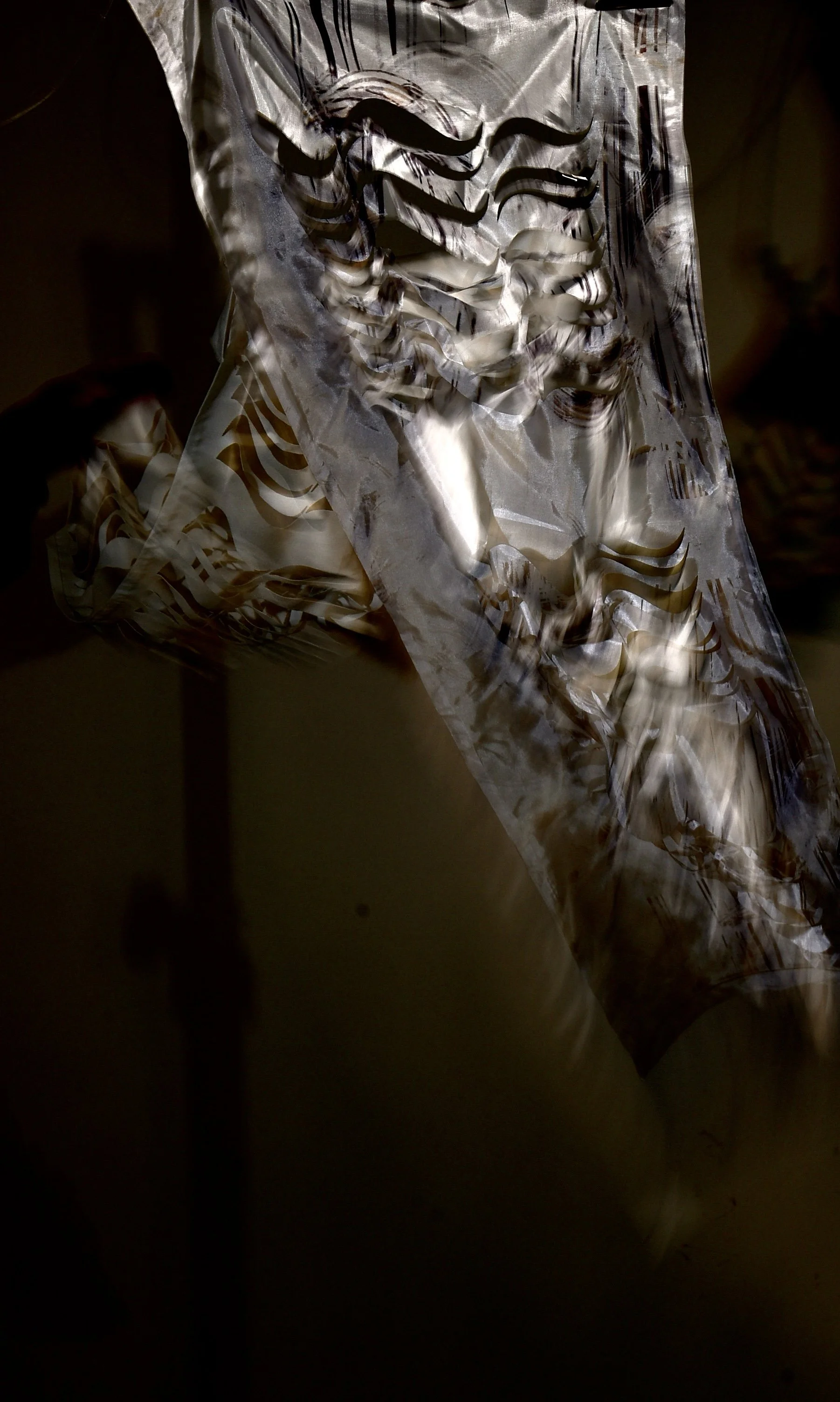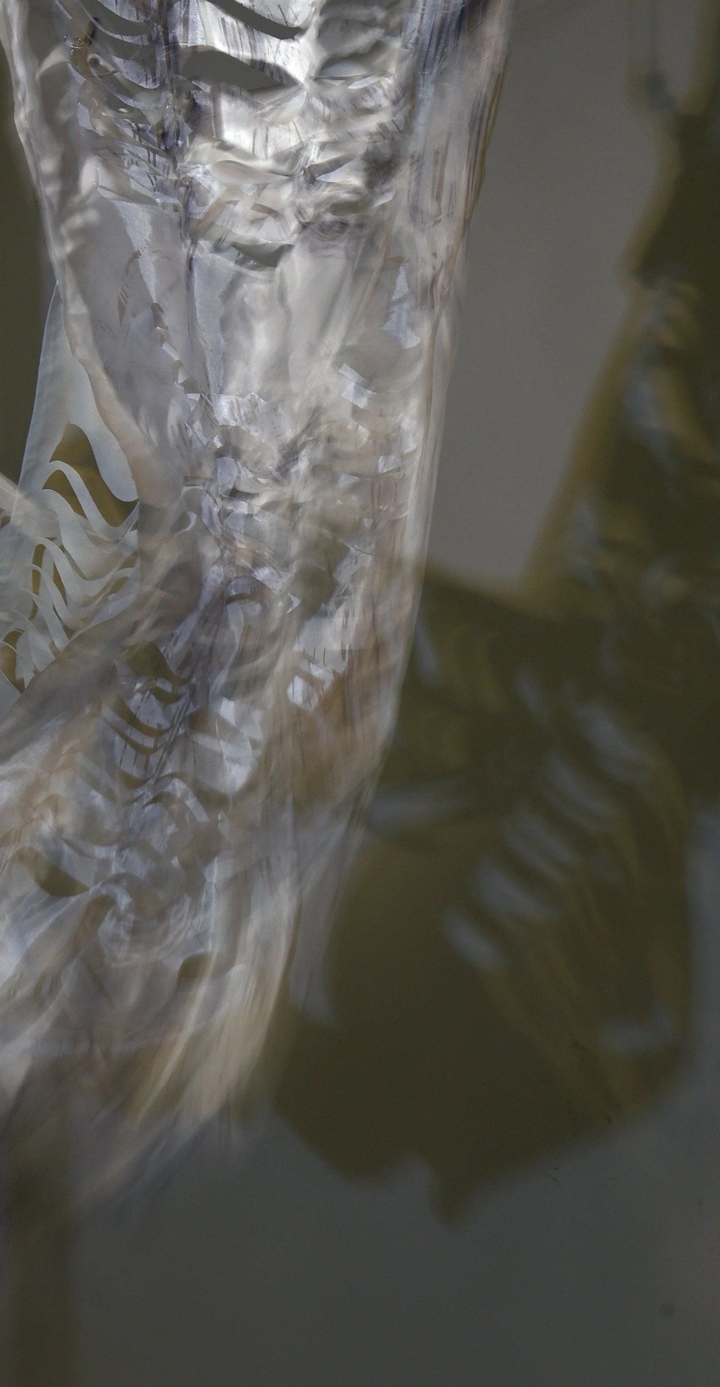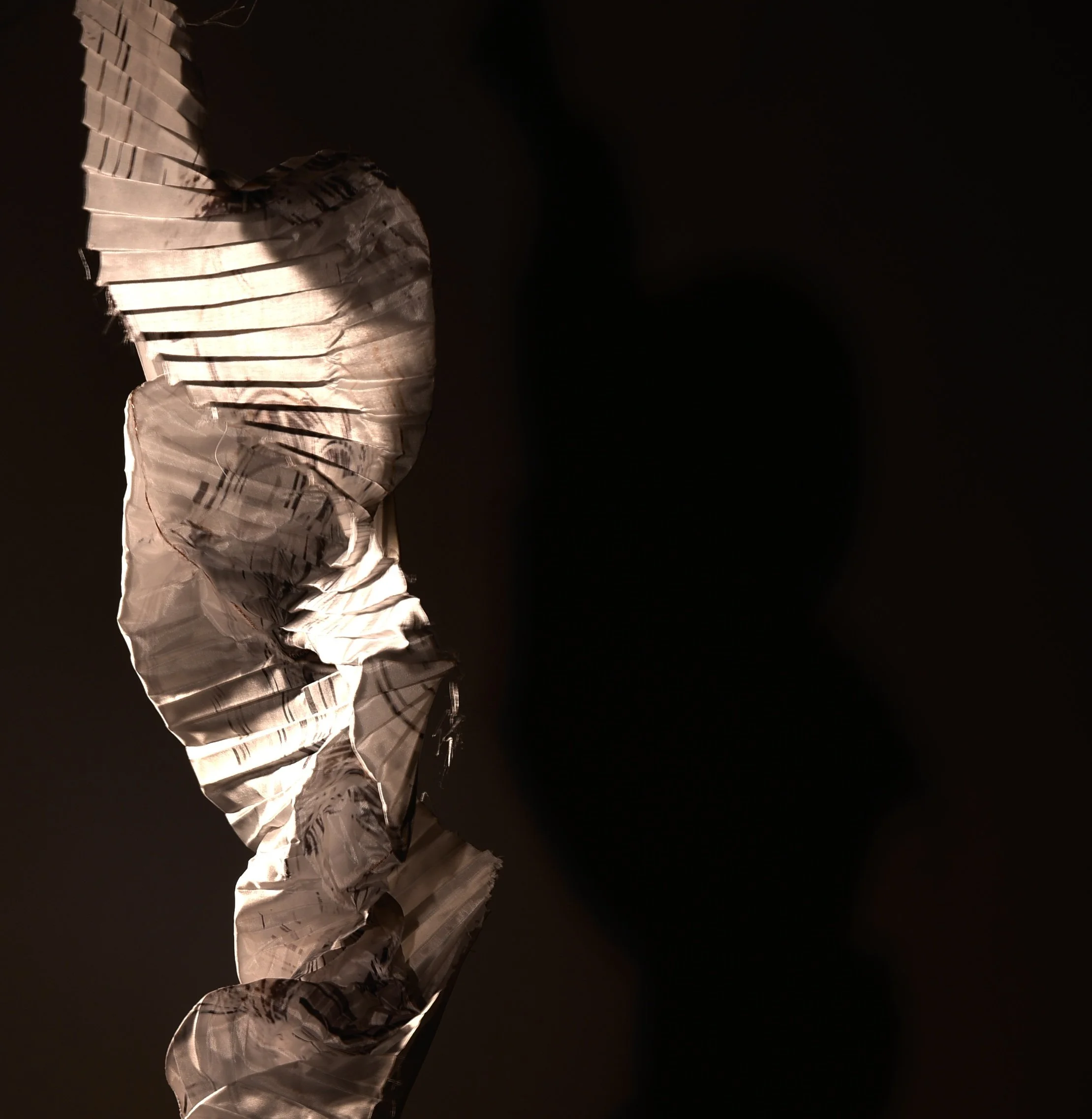 Fabric has been examined in terms of its intrarelation between process, surface and the environment. The transformative potential of working with the concepts of light, movement and pattern has informed experimental processes of making in my textile practice. The changeability of the textile is explored through light and shadow.